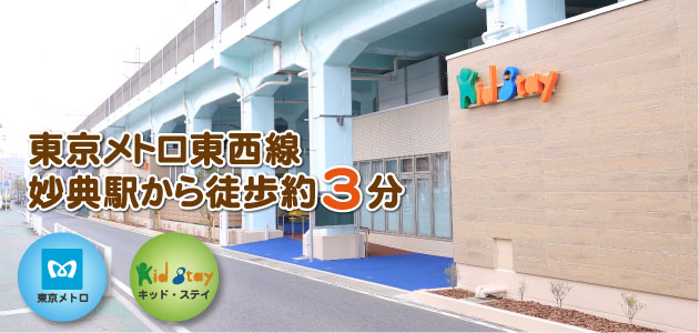 キッド・ステイ妙典保育園は、南行徳、原木中山に続いて、東京メトロとの共同事業として開設されました。 お子様がびのび過ごせる様に、高架下を生かした建築デザインや安心・安全な保育をするための環境整備に力を入れ、子育て支援の拠点として地域に愛される施設を目指しています。